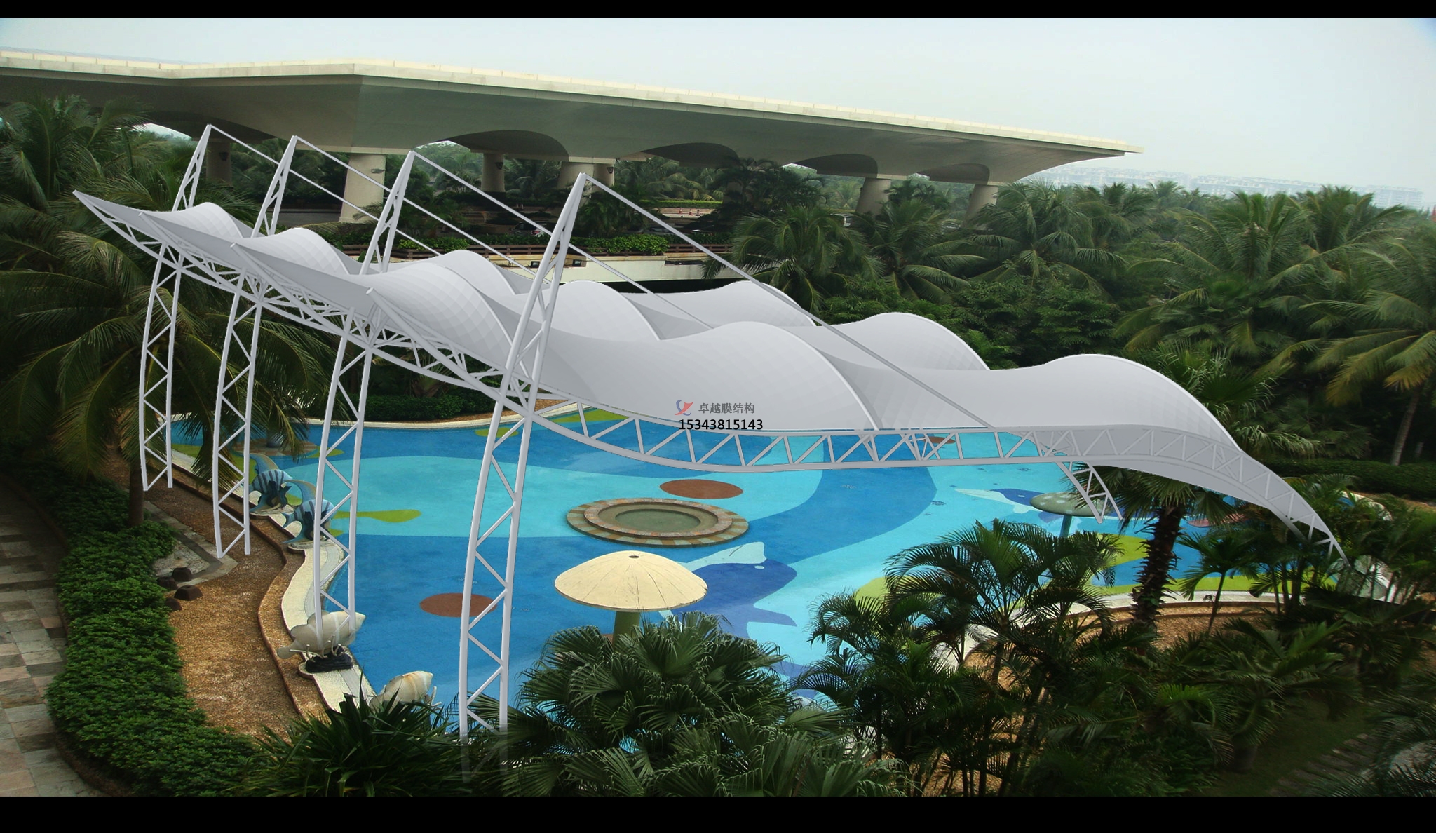 張拉膜以性能優(yōu)良柔軟織物為材料,由膜內空氣壓力支撐膜面,或利用柔性鋼索或剛性支撐結構使膜面產(chǎn)生一定的預張力,從而形成具有一定剛度、能夠覆蓋大空間的結構體系。張拉膜結構造型自由、輕巧、柔美,充滿(mǎn)力量感,又因其材質(zhì)的可塑造性強,因此建筑師結合張拉膜的這種特性,充分發(fā)揮建筑師的想象力,用不同的裁剪和不同的節點(diǎn)位置形狀而產(chǎn)生出的不同的藝術(shù)表現形式,可謂是一種新型藝術(shù)的表現形式。