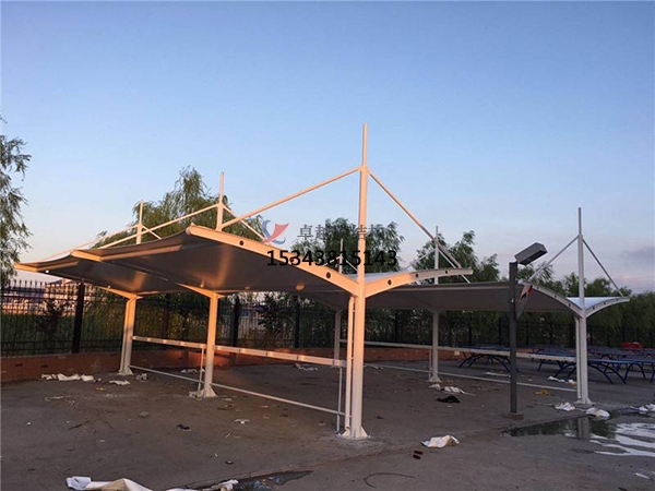 膜結構車(chē)棚膜結構所用的膜材料為具有、阻燃、耐久、自潔等特性的復合材料,一般由基布和涂層二部分組成?;贾饕捎镁壑w維或玻璃纖維絲編織而成,有平織和絞等多種編織方法,不同的膜結構車(chē)蓬編織方法影響著(zhù)膜材料的經(jīng)緯向力學(xué)性能指標,膜的抗拉強度和抗撕裂強度等;涂層材料主要有聚四氟乙烯和聚氯乙烯,在一定程度上提高了膜材料各項強度指標,為提高膜材料的耐久、自潔等特性,表面往往有一層氟涂層或硅涂層,膜材料的耐火、耐久及防水、自潔等性能,決定著(zhù)膜材料的物理特性。