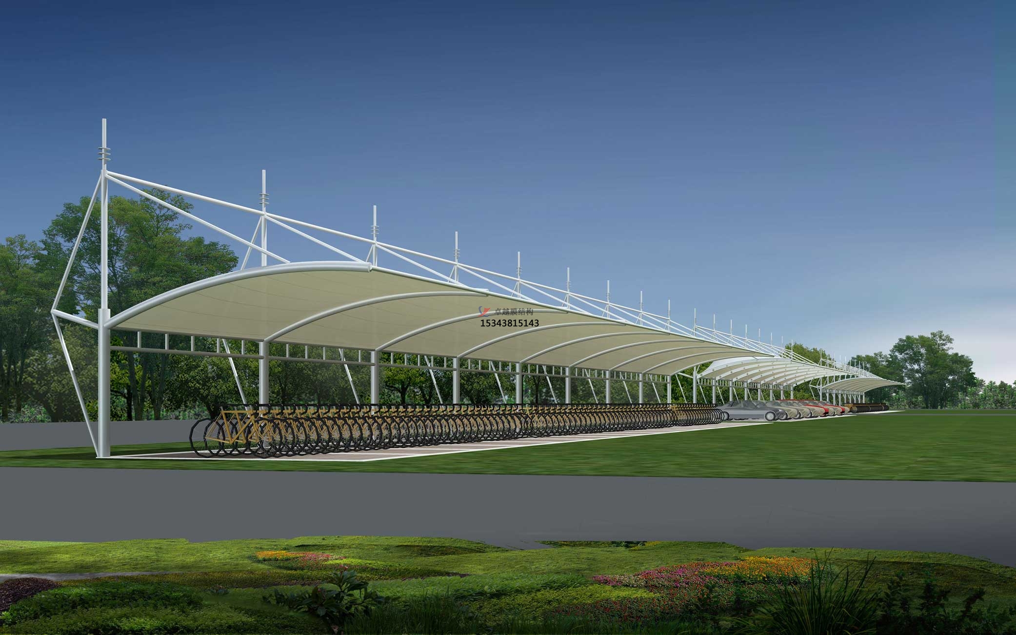 結構形式:骨架式張拉膜車(chē)棚