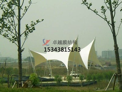 景觀(guān)膜結構遮陽(yáng)棚膜結構所用的膜材料為具有***、阻燃、耐久、自潔等特性的***復合材料,一般由基布和涂層二部分組成?;贾饕捎?**聚脂纖維或玻璃纖維絲編織而成,有平織和絞等多種編織方法,不同的膜結構車(chē)蓬編織方法影響著(zhù)膜材料的經(jīng)緯向力學(xué)性能指標,***膜的抗拉強度和抗撕裂強度等;涂層材料主要有聚四氟乙烯和聚氯乙烯,在一定程度上提高了膜材料各項強度指標,為提高膜材料的耐久、自潔等特性,表面往往有一層氟涂層或硅涂層,***膜材料的耐火、耐久及防水、自潔等性能,決定著(zhù)膜材料的物理特性。