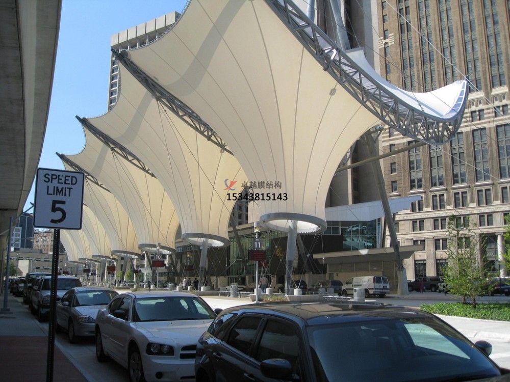 因而膜結構在行業(yè)內有“不破玻璃”的稱(chēng)號。一起成本只要其它結構車(chē)棚的一半或者更少。 藝術(shù)性:膜結構車(chē)棚更值得一提的是它能夠依據支撐構件的方位和高低排列組成不同的形狀,這在金屬車(chē)棚上是無(wú)法幻想的。如在車(chē)棚頂部經(jīng)過(guò)拉伸索,使膜結構布邊沿向上翻起。這要是在彩鋼上只能經(jīng)過(guò)對彩鋼板進(jìn)行預熱加工才行,需要耗費極大的代價(jià)。