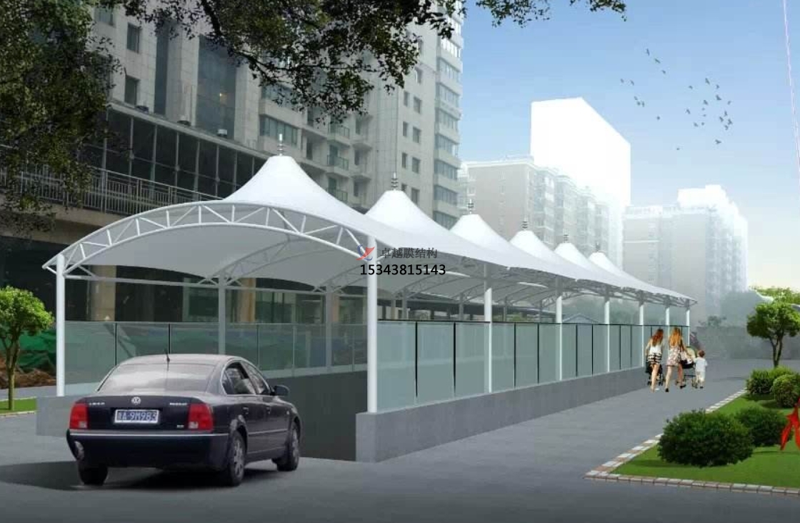 車(chē)庫出入口膜結構頂棚廣泛應用于住宅區、商業(yè)區、公共停車(chē)場(chǎng)等場(chǎng)所,用于車(chē)庫出入口的遮陽(yáng)和防護,提升車(chē)輛和行人的安全性和舒適度。