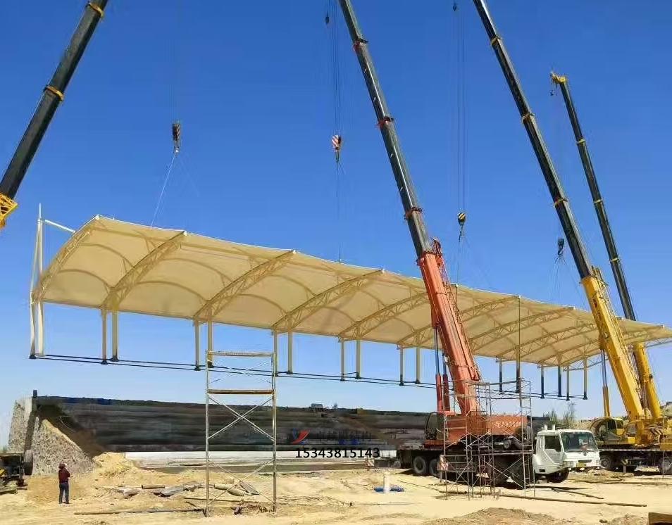 1、雖然膜結構可以形成大面積的覆蓋空間,從方便膜面加工制作及安裝的角度來(lái)看,大覆蓋面積的膜結構應進(jìn)行適當的分區,以減小單片膜面的面積。將膜面分區的另一個(gè)好處是萬(wàn)一以后發(fā)生膜材撕裂的情況,拆卸修補或更換的操作比較方便。