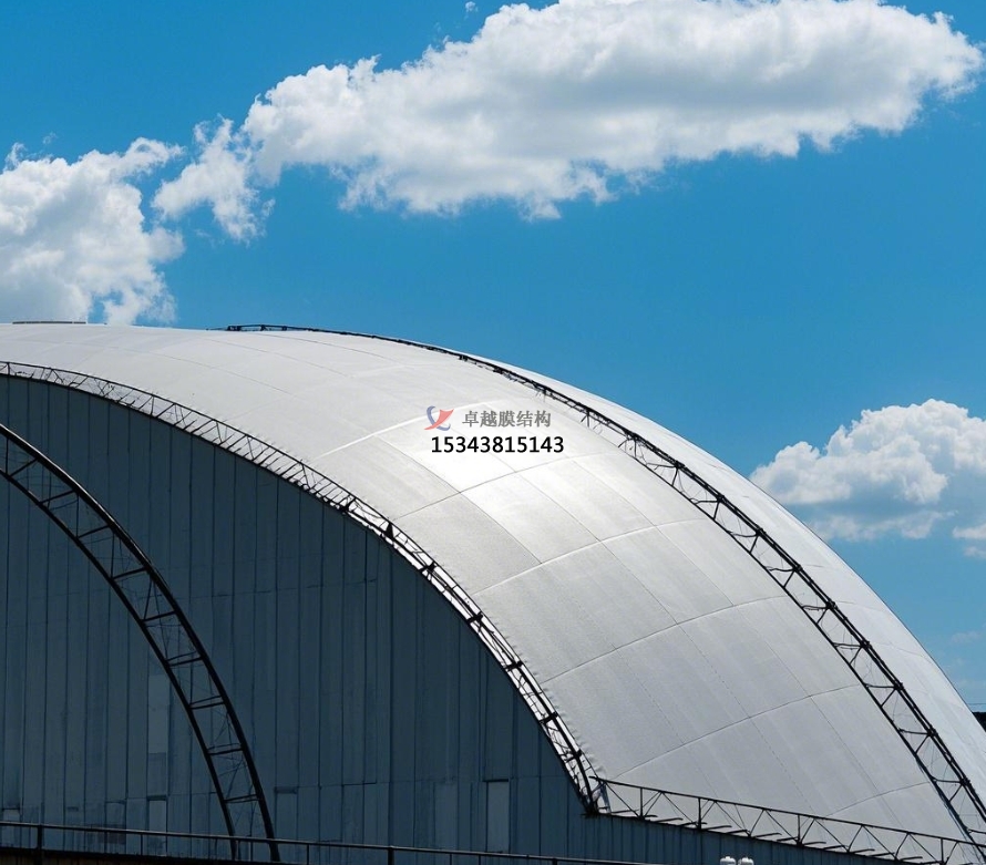 另一種常見(jiàn)的是骨架式膜結構,如首鋼水城鋼鐵原煤堆場(chǎng)環(huán)保封閉煤棚工程,采用網(wǎng)架結構作為骨架,膜材覆蓋其上。沿網(wǎng)架結構縱向 10 米高處設置防風(fēng)抑塵網(wǎng),既保證了內部通風(fēng)需求,又將露天的煤炭集中存放 。