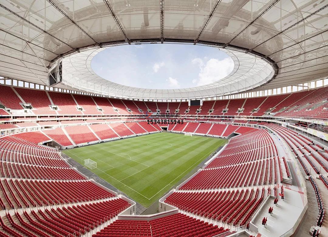 球場(chǎng)膜結構景觀(guān)設計要點(diǎn):其設計要點(diǎn)主要有結構穩固性、排水系統設計、與周邊環(huán)境協(xié)調。在結構穩固性中,確保檁條、鋼架和各種連接物件的高質(zhì)量,合理布置加強筋和穩定壓桿,對大型膜結構看臺還要考慮伸縮設計,保證在不同環(huán)境條件下的結構穩定性。排水系統設計中,精心規劃排水系統,設置合理的排水坡度和排水口,確保在雨季能夠迅速排空積水,避免雨水積壓對膜結構和下部結構造成損害。與周邊環(huán)境協(xié)調中,會(huì )充分考慮球場(chǎng)所處的自然環(huán)境、城市景觀(guān)等因素,使膜結構景觀(guān)與周邊環(huán)境相融合,形成和諧統一的整體。