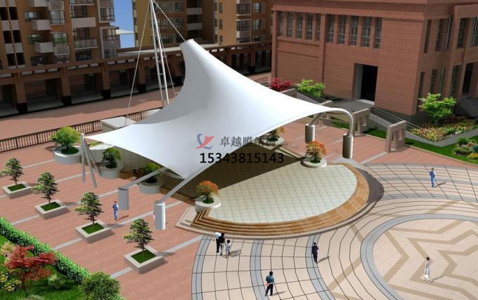 2、藝術(shù)性:除了一般遮陽(yáng)棚不可比擬的實(shí)用、耐用、遮風(fēng)擋雨的功能外,膜結構遮陽(yáng)棚更是一座雕塑,一件藝術(shù)品,給人美的視覺(jué)享受。其柔美,其曲線(xiàn),其剛柔并濟,其豐富造型,其潔白無(wú)瑕,讓人眼前一亮,回味悠長(cháng)。