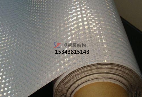 膜結構車(chē)棚上面的膜材是一一種刀刮布,是一種化學(xué)合成材料,厚度比普通的布要厚。刀刮布的正面是光滑的,背面是粗糙的,顆粒狀比較厚分布布均勻。