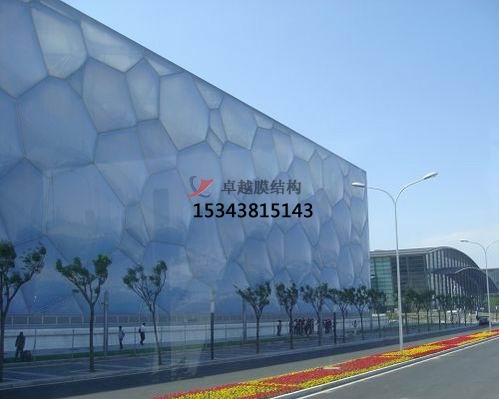 雙層的ETFE充氣膜結構,每一塊像一個(gè)“水泡泡“,氣枕通過(guò)控制充氣量的多少,對遮光度和透光性進(jìn)行調節,有效地利用自然光,節省能源,具有良好的保溫隔熱、消除回聲,提供溫馨、安逸的環(huán)境,ETFE不僅具有優(yōu)良的抗沖擊性能、電性能、熱穩定性和耐化學(xué)腐蝕性,而且機械強度高,加工性能好。使用20年以上。