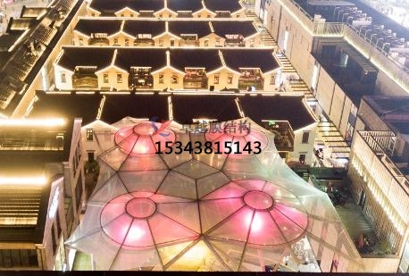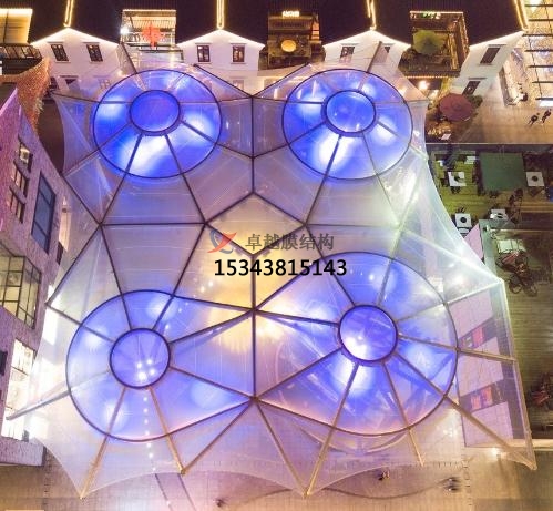 工程特點(diǎn):該項目是國內好的單層ETFE加雙層氣枕膜完美嵌合的景觀(guān)雨棚建筑,利用ETFE膜材的高透光高自潔性以及雙層氣枕的隔熱能力,雨棚在具有遮陽(yáng)擋雨功能的同時(shí)還可以實(shí)現自然采光,行人沒(méi)有傳統密封建筑的束縛感;另一方面,ETFE膜結構建筑是當代更新的建筑應用形式之一,工程高度定制,顏值高,具有好的性,天生自帶聚集人氣光環(huán)。
