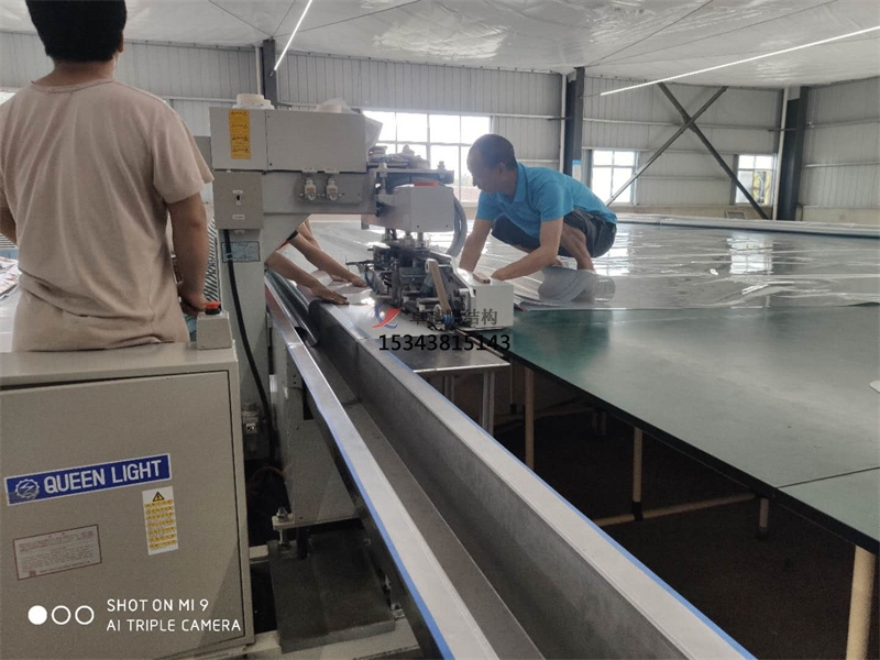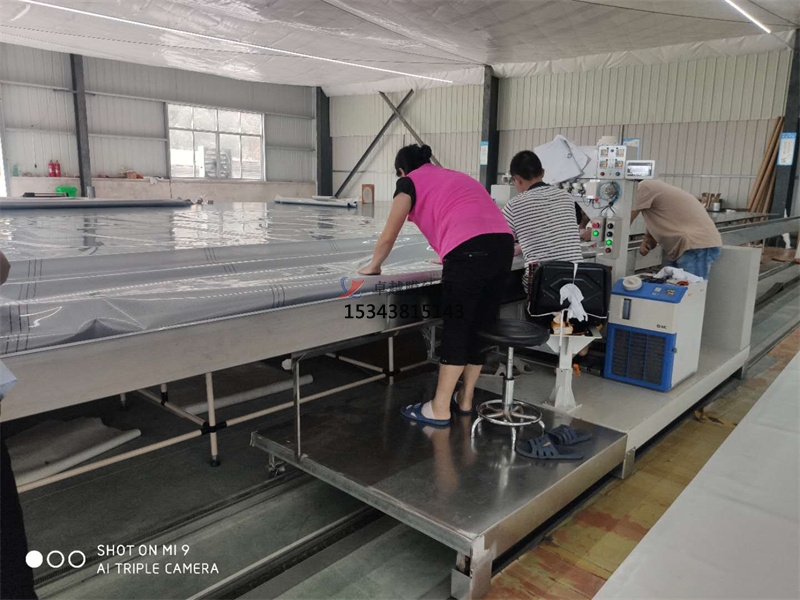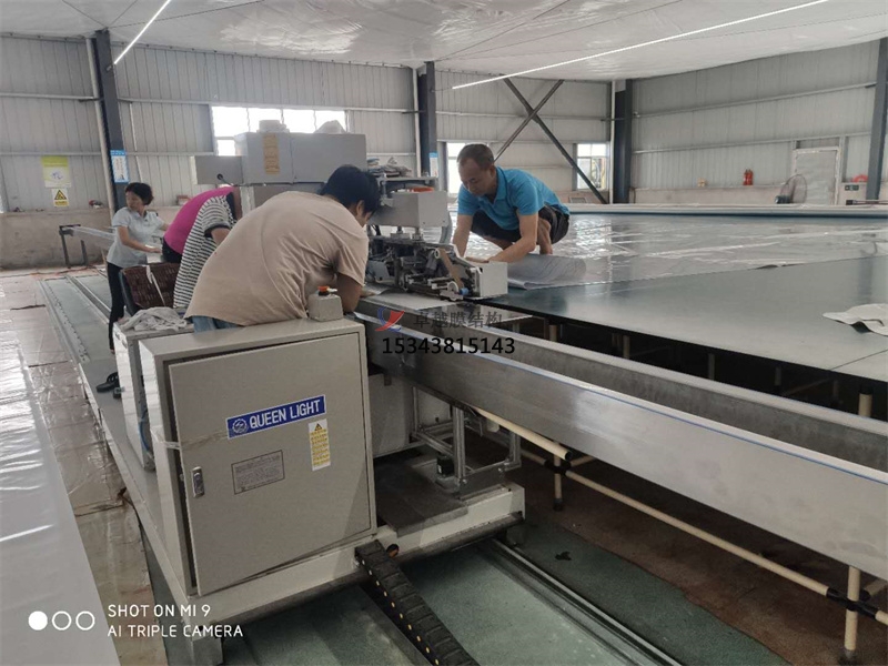 下面小編就給各位看官分享一下我廠(chǎng)膜材加工過(guò)程中的一組照片。 無(wú)塵焊接中,膜材在平臺固定,軌道機滑動(dòng)焊接。