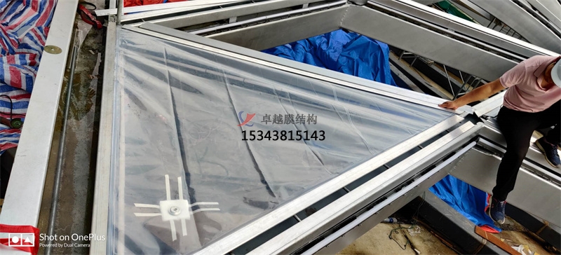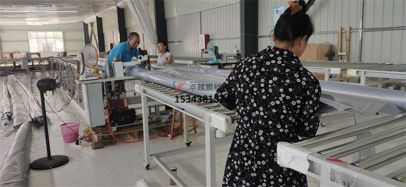 現場(chǎng)安裝測試第片膜材。帶充氣管道的項目。