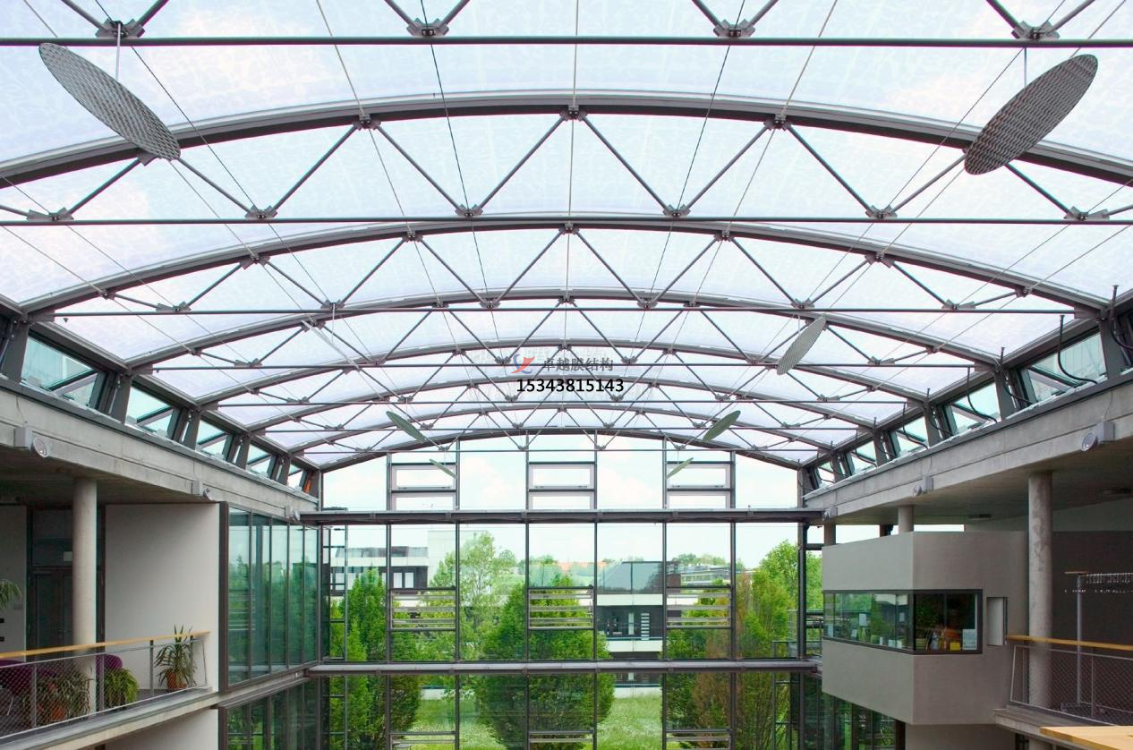 在鶴壁膜結構ETFE膜結構工程中,通常采用ETFE膜材作為覆蓋材料,通過(guò)鋼架、鋼索等加強構件來(lái)支撐和固定膜材。這種工程可以應用于各種公共建筑、體育場(chǎng)館、工業(yè)設施等領(lǐng)域,如車(chē)棚、雨棚、遮陽(yáng)罩等。