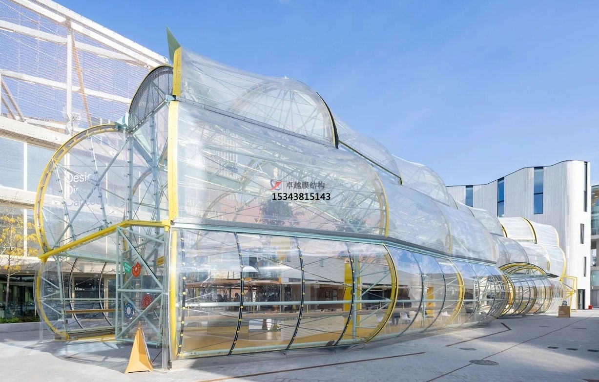 ETFE是一種新興的建筑材料,由乙烯和四氟乙烯共聚而成,是一種輕質(zhì)、耐熱的薄膜,俗稱(chēng)“軟玻璃”,也是目前為止最強韌的氟塑料。ETFE在保持了PTFE良好的耐熱、耐化學(xué)和電絕緣性能的同時(shí),它的耐輻射、機械性能和加工性能有了很大程度的改善。