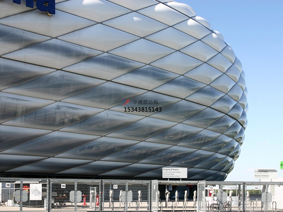 8)生產(chǎn)廠(chǎng)家對ETFE膜材料的質(zhì)量保證期為10年,實(shí)際的使用壽命可超過(guò)20年。