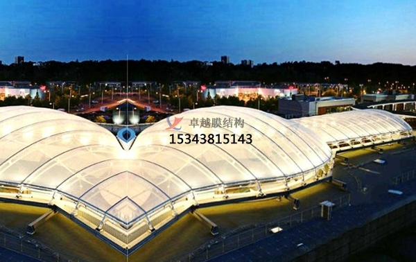 2005年在德國慕尼黑竣工的安聯(lián)球場(chǎng)(66,500 m2),是當時(shí)世界上更大的膜結構體育場(chǎng)。整體采用ETFE氣枕膜結構。