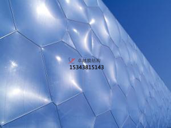 目前國內膜結構發(fā)展振奮人心。隨著(zhù)一些大型體育館、候機大廳等建設以及2008年北京奧運會(huì )及2010年上海世博會(huì )和廣州亞運會(huì )等國際盛會(huì )的舉辦,為中國膜結構的發(fā)展帶來(lái)了機遇和挑戰。例如北京奧運會(huì )場(chǎng)館“水立方”膜結構采用進(jìn)口ETFE建筑膜材,是目前國內更大的ETFE膜材結構建筑。“水立方”采用雙層ETFE充氣膜結構,共1437塊氣枕,每一塊都好像一個(gè)“水泡泡”,氣枕可以通過(guò)控制充氣量的多少,對遮光度和透光性進(jìn)行調節,有效地利用自然光,節省能源,并且具有良好的保溫隔熱、消除回聲,為運動(dòng)員和觀(guān)眾提供溫馨,安逸的環(huán)境,并做到了藝術(shù)、科技、環(huán)保的完美結合。“鳥(niǎo)巢”采用雙層膜結構,外層用ETFE防雨雪防紫外線(xiàn),內層用PTFE達到保溫、防結露、隔音和光效的目的。