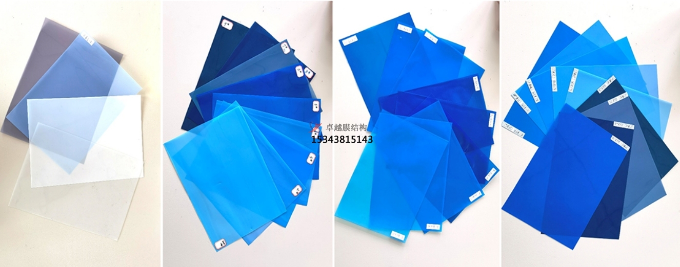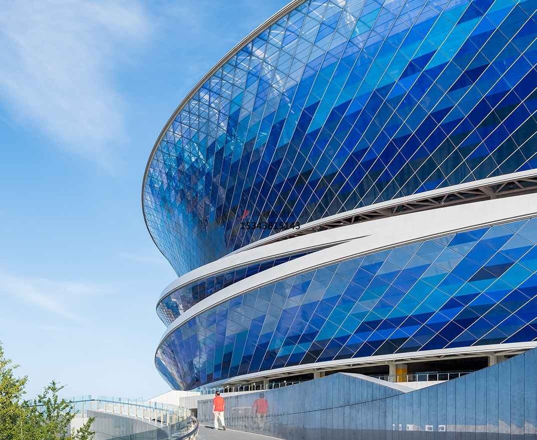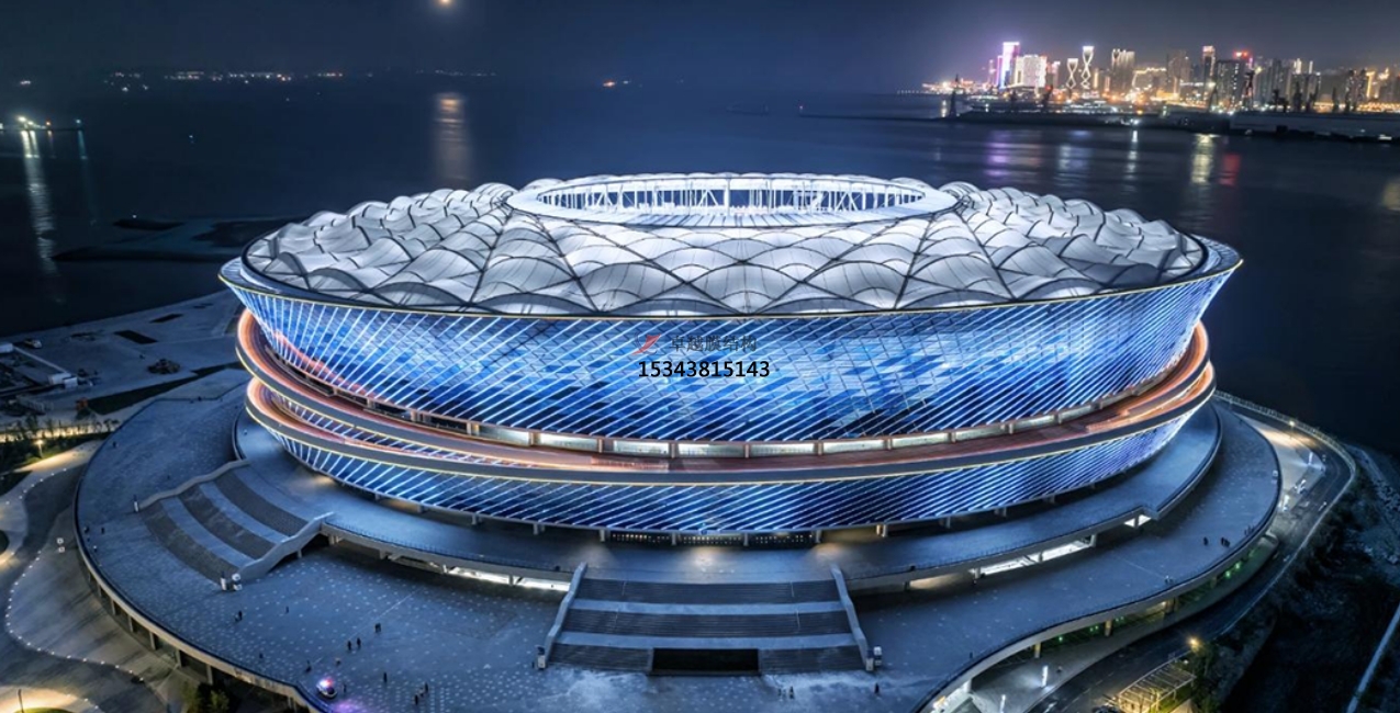 2022年,大連梭魚(yú)灣體育中心,立面使用德國NOWOFOL ETFE 9種不同藍色彩膜,頂面內圈使用透明