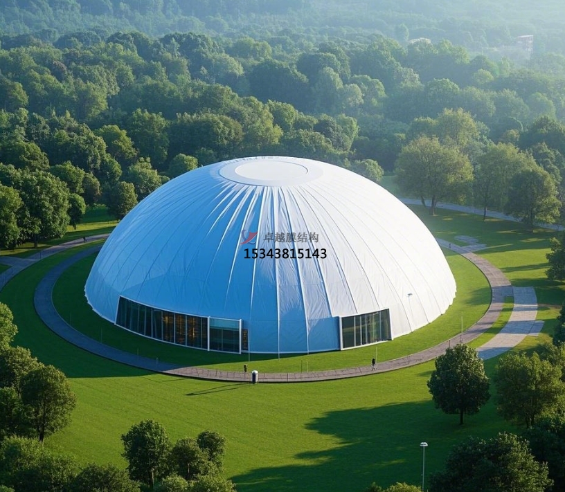 充氣膜體育館利用高強度、高彈性的薄膜材料,通過(guò)向內部充氣,使膜材在空氣壓力作用下緊繃,形成穩定的自支撐結構。這種結構形式擺脫了傳統建筑對大量鋼梁柱支撐的依賴(lài),大大減輕了建筑的整體重量。同時(shí),由于其無(wú)需復雜的鋼筋和混凝土結構,搭建過(guò)程相對簡(jiǎn)便,能夠在較短時(shí)間內完成場(chǎng)館的建設。