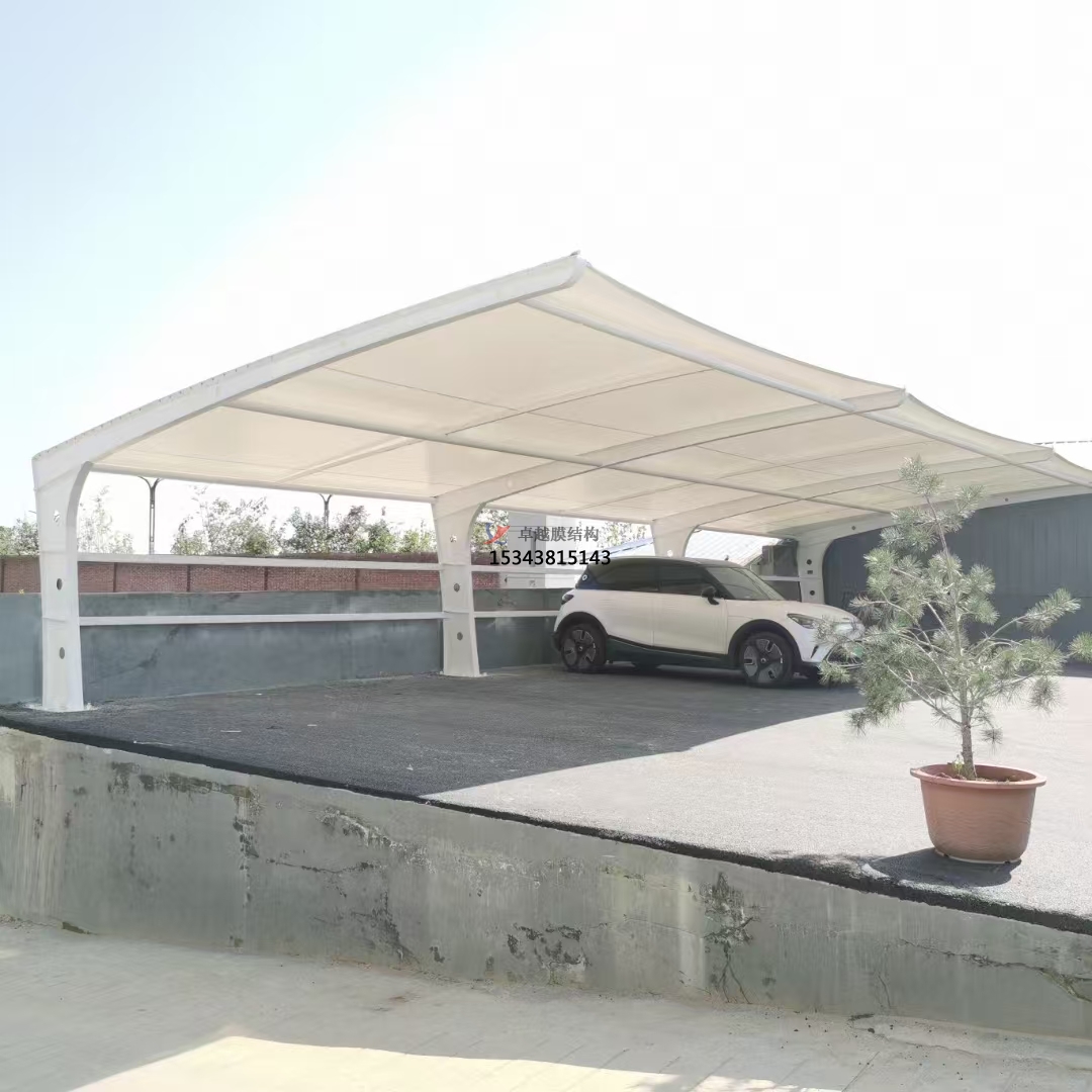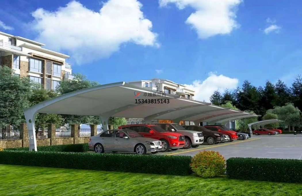 膜結構車(chē)棚是現代大跨度空間結構停車(chē)場(chǎng)的主要建設形式之一,具有自身重量輕、受力良好、造型別致等特點(diǎn)。這種結構除了能滿(mǎn)足防風(fēng)雨、防日曬等基本功能外,還有較好的標識招攬效果。