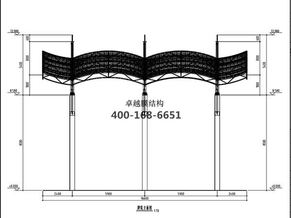 我公司設計人員的周口盛和小學(xué)膜結構看臺/頂棚工程設計方案得到甲方確認,部分設計圖紙如下: