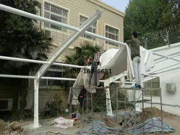 膜結構罩棚/車(chē)棚工程項目,10月10日我們卓越膜結構公司人員開(kāi)始到現場(chǎng)施工。10月17日竣工。