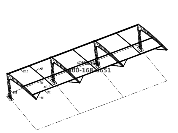膜材,鋼結構采用更好的標準Q235B鋼材,表面采用酚醛底漆處理,面漆采用白色鋼結構專(zhuān)用快干磁漆。