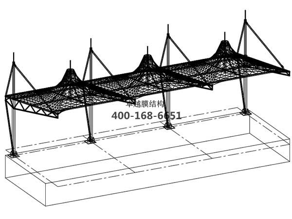 本工程膜材采用白色高端國產(chǎn)星益達PVDF高自潔環(huán)保建筑膜材,鋼結構采用更好的標準Q235B鋼材,表面采用酚醛底漆處理,面漆采用白色鋼結構專(zhuān)用快干磁漆。