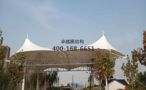 本工程膜材采用白色高端國產(chǎn)星益達高自潔環(huán)保建筑膜材,鋼結構采用更好的標準Q235B鋼材,表面采用酚醛底漆處理,面漆采用白色鋼結構專(zhuān)用快干磁漆。