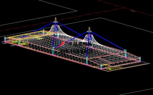 本工程膜材采用白色高端國產(chǎn)星益達PVDF高自潔環(huán)保建筑膜材,鋼結構采用更好的標準Q235B鋼材,表面采用酚醛底漆處理,面漆采用白色鋼結構專(zhuān)用快干磁漆。