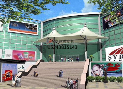 張拉膜景觀(guān)具有藝術(shù)性,充分發(fā)揮建筑師的想象力,又體現結構構件清晰受力之美。由于膜材具有一定的透光率,白天可減少照明強度和時(shí)間,能很好的節約能源。同時(shí)夜間彩燈投射形成的絢爛景觀(guān)也能達到很好的廣告宣傳效益。