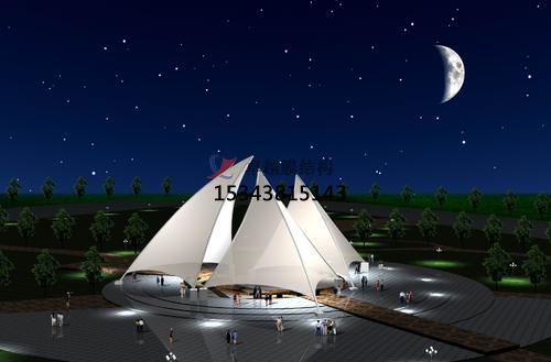 2.膜結構建筑的整體藝術(shù)性強的特點(diǎn):膜結構建筑突破了傳統的建筑結構類(lèi)型,以造型學(xué)、色彩學(xué)為依托,可以結合每個(gè)現場(chǎng)的自然條件,充分發(fā)揮建筑師的想象力,根據創(chuàng )意建造出傳統建筑難以實(shí)現的曲線(xiàn)線(xiàn)條造型,使膜結構建筑建筑色彩豐富,富有時(shí)代氣息,可以完美的詮釋出結構的構件受力之美。夜晚在配合燈光易形成夜景,會(huì )給人以現代美的享受。