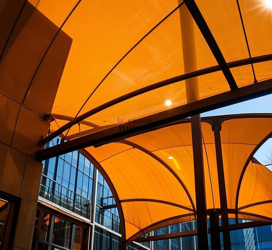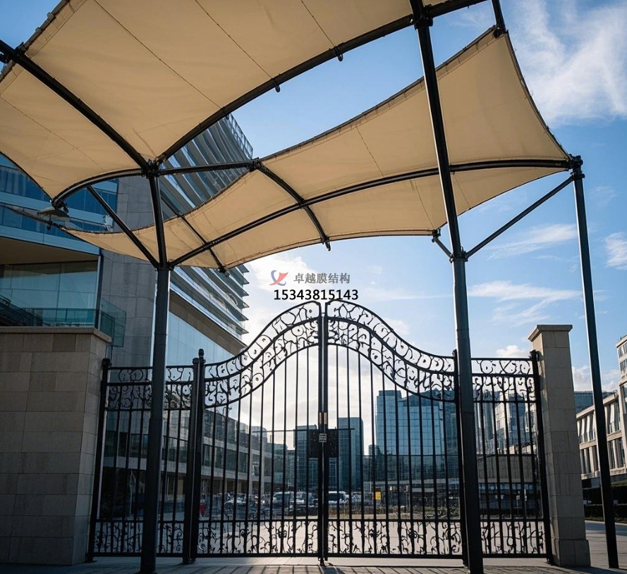 膜結構大門(mén)還具備良好的遮陽(yáng)功能。炎炎夏日,膜材能夠為居民撐起一片清涼的空間,無(wú)論是步行進(jìn)出小區的居民,還是在門(mén)口短暫停留等待的人員,都能免受烈日的炙烤。部分膜材具有一定的透光性,在遮陽(yáng)的同時(shí),還能讓自然光適度透入,使大門(mén)內部空間明亮舒適,避免因光線(xiàn)不足而產(chǎn)生的昏暗壓抑感。此外,膜結構大門(mén)還可以根據需要設置一些附屬設施,如在大門(mén)兩側安裝宣傳欄,用于發(fā)布小區通知、活動(dòng)信息等,方便居民及時(shí)了解小區動(dòng)態(tài)。