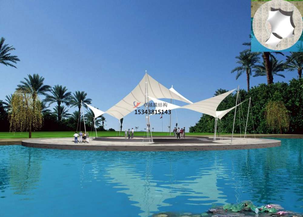 第三,對于張拉膜景觀(guān)的安裝要考慮到天氣狀況,如條件比較惡劣,比如風(fēng)力較大、雨水較多的時(shí)候應該停止施工,待惡劣天氣過(guò)后再重新進(jìn)行。因為風(fēng)力較大的話(huà),膜面以及下面的支柱容易出現顫動(dòng),既影響施工 效果,也影響人員的安全。而雨水較多也容易使雨水在膜面上堆積。