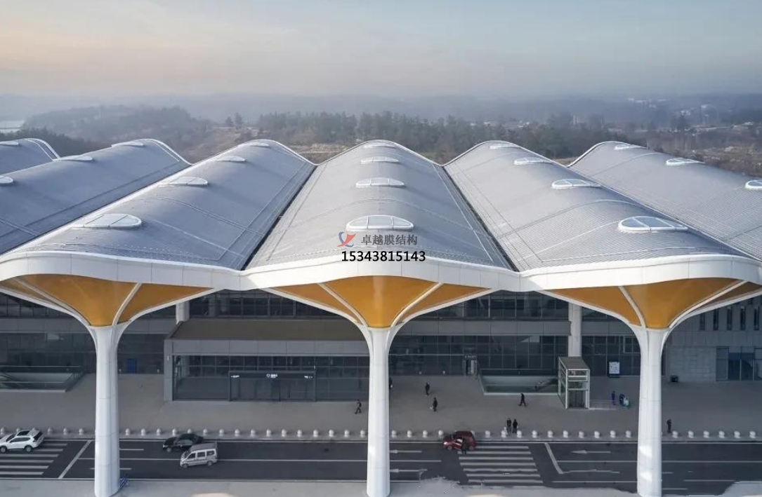ETFE膜結構將內部構造徐徐展現,猶如樹(shù)葉紋理,使建筑空間生動(dòng)而富有生命力。夜間車(chē)站則通過(guò)設置于膜結構腔體內的 LED燈點(diǎn)亮形成一個(gè)發(fā)光體,像一支明亮“燈籠”,照亮旅客回家的路。