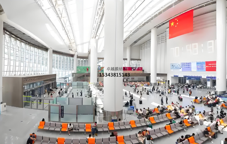 膜材具有一定的吸聲性能,對于降低高鐵站內部的噪音起到了積極作用。在高鐵站這樣人員密集、列車(chē)運行噪音較大的環(huán)境中,膜結構可以吸收部分聲波,減少聲音的反射和混響,使候車(chē)大廳內的聲音環(huán)境更加清晰、舒適。這不僅有助于旅客聽(tīng)清廣播通知等重要信息,也能緩解因嘈雜環(huán)境帶來(lái)的煩躁情緒。