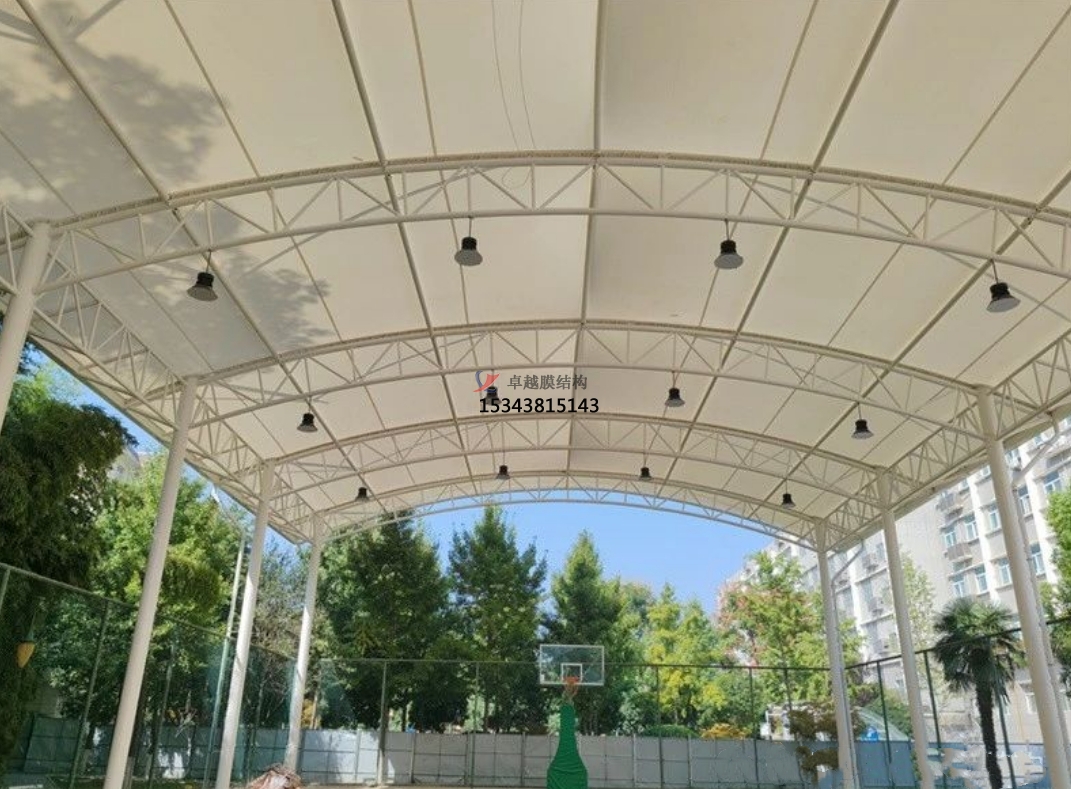 籃球場(chǎng)膜結構頂棚時(shí),需要綜合考慮隔音材料的選擇、結構設計和其他附加措施,以提高其隔音性能。