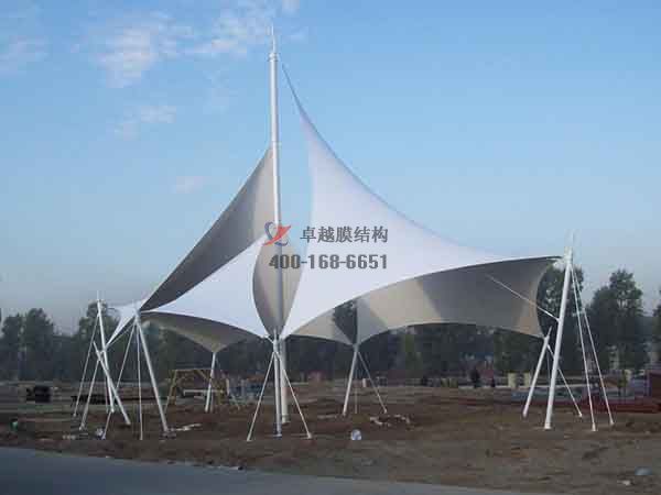 項目結構形式:四周軟邊骨架式膜結構景觀(guān)小品