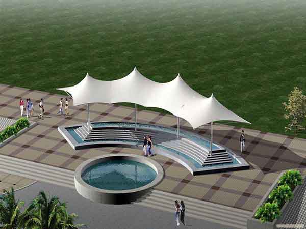 景觀(guān)結構形式:四周軟邊骨架式膜結構景觀(guān)小品