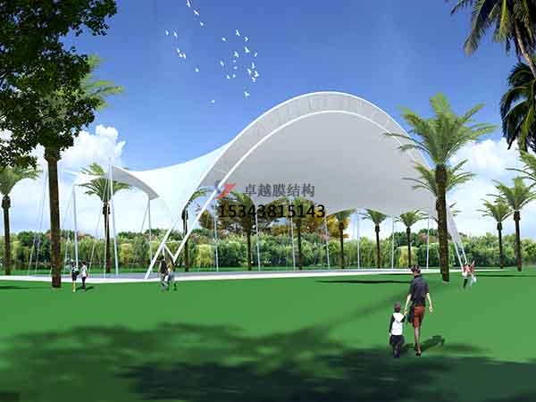 項目結構形式:四周軟邊骨架式膜結構景觀(guān)小品