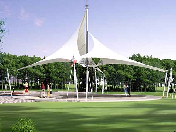項目結構形式:四周軟邊骨架式膜結構景觀(guān)小品