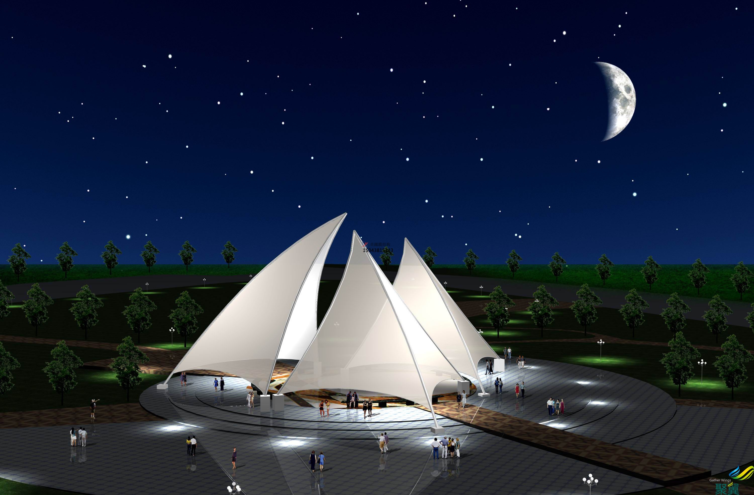 項目結構形式:四周軟邊骨架式張拉膜結構景觀(guān)小品