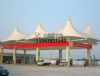 該加油站采用了先進(jìn)的張拉技術(shù),通過(guò)鋼索和支撐桿將膜結構固定在地上,形成了寬敞明亮的加油空間。整個(gè)加油站的膜結構采用了高強度聚酯纖維材料,具有高透明度、抗紫外線(xiàn)、防水、防火等特點(diǎn),保證了加油體驗的安全性和舒適性。