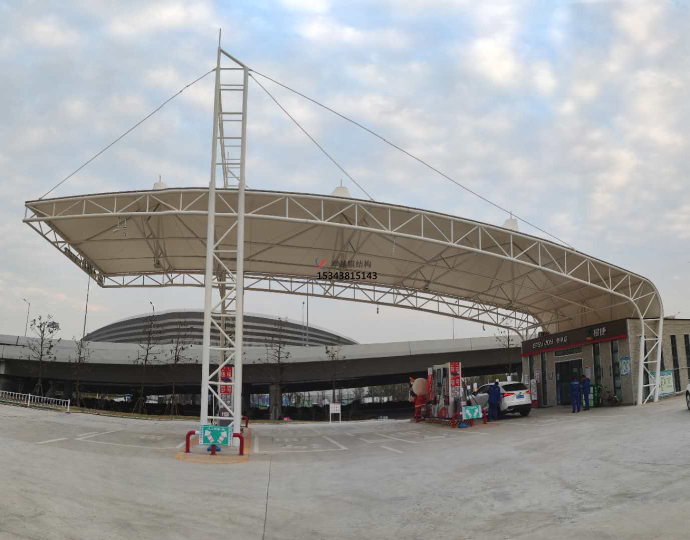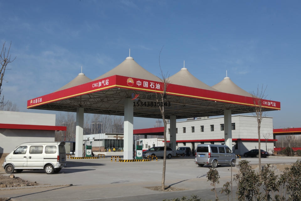 加油站膜結構,一般是指安裝在加油站的膜結構頂棚。膜結構頂棚因其自重輕,具有良好的受力特點(diǎn),所以成為大跨度空間結構的主要形式之一,加油站膜結構也屬于其范疇。
