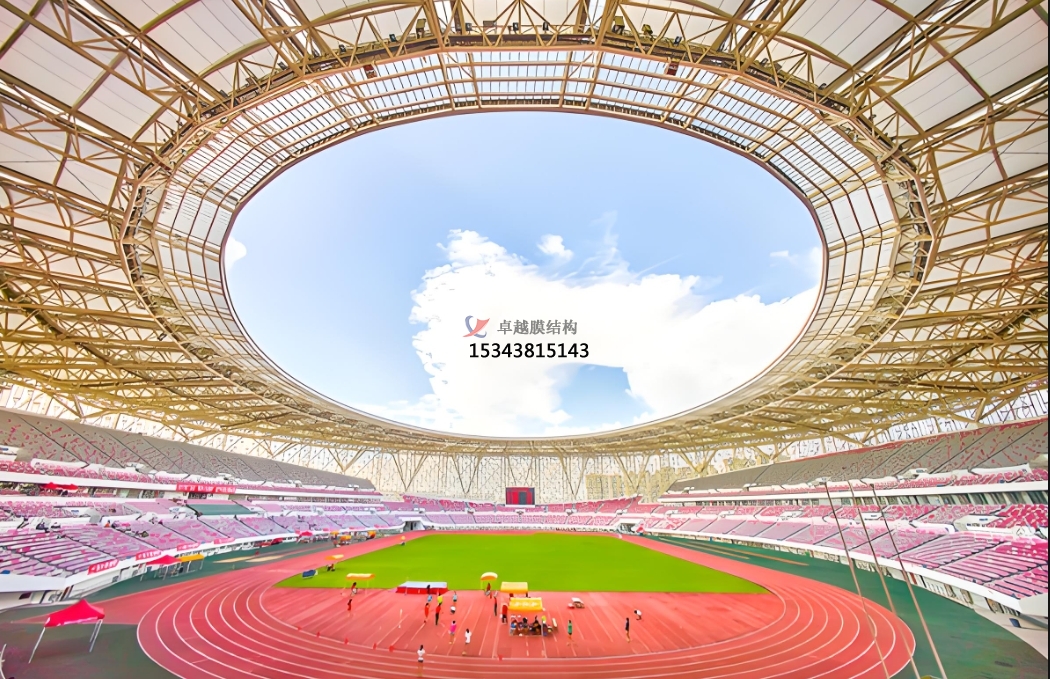 在體育場(chǎng)館及其他設施采用內膜,不僅可以改善透光、吸音及保溫作用,還可以改善建筑外觀(guān),可以將復雜的鋼結構、馬道及各種管道等進(jìn)行遮擋,采用高通透性的網(wǎng)格膜可以使鋼結構變得若隱若現。