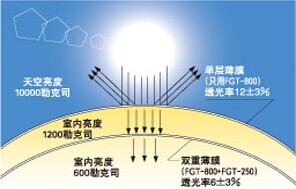 Skytop對太陽(yáng)光的反射性率高、吸收率低。能抑制太陽(yáng)熱能侵入建筑物內。另外,由于材料半透明,所以白天不需要人工照