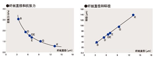 -般隨著(zhù)纖維的直徑變小,單位面積的拉伸強度會(huì )增加。