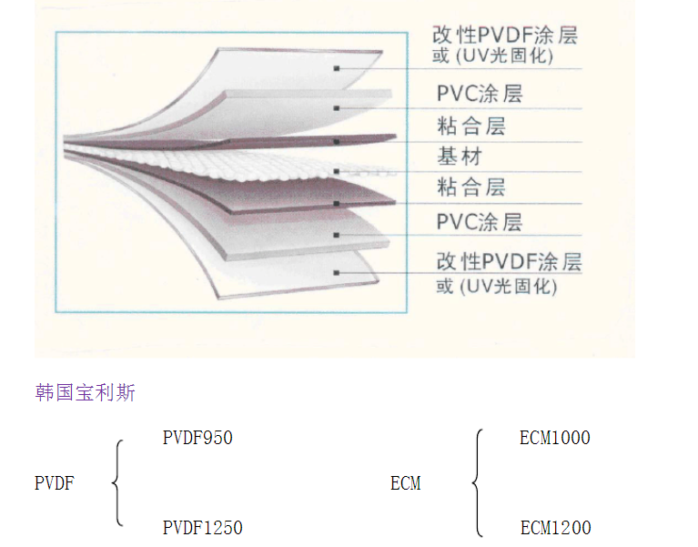 C類(lèi)是三類(lèi)中更次的,以聚酯(滌綸)織物為基材涂PVC而成。按涂層材料分,有聚四氟乙烯( PTFE)、聚偏氟Z烯( PVDF)、聚氟乙烯( PVF)、聚氯乙烯(PVC)、聚氨酯(PU)、橡膠等,它的壽命因不同的表面涂層而異,一般可達12- 50年。 [聚乙烯(PE) :塑料主要成分]