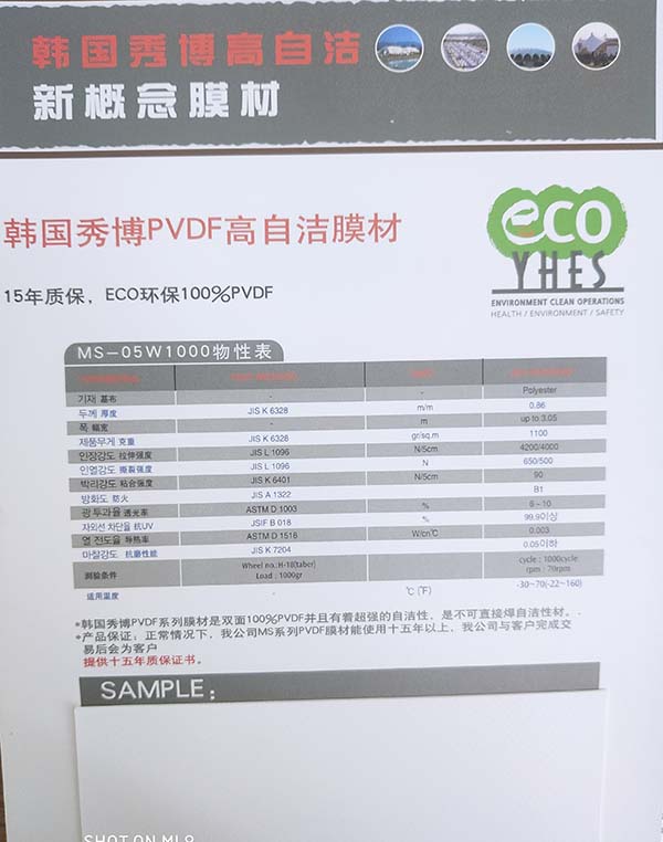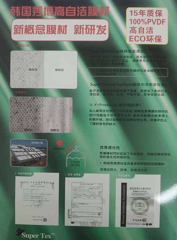 秀博工業(yè)集團全新開(kāi)發(fā)的納米抗UV,ECM膜材,全新的納米層可使膜材使用壽命達到15 年并不發(fā)黃變色,持久如新。同時(shí)通過(guò)ECO環(huán)