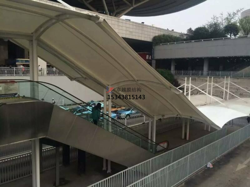 地鐵入口使城市公共空間與建筑空間相鄰的界面,成為城市空間的組成部分它是人們視覺(jué)更先接觸的部分,因此,除了功能以外,還應有很強的標識性,并能體現建筑的個(gè)性,是建筑環(huán)境和城市景觀(guān)的重要組成部分。由于膜結構獨特的造型是其他結構類(lèi)型無(wú)法比擬的,故成為近來(lái)建筑入口經(jīng)常采用的形式。