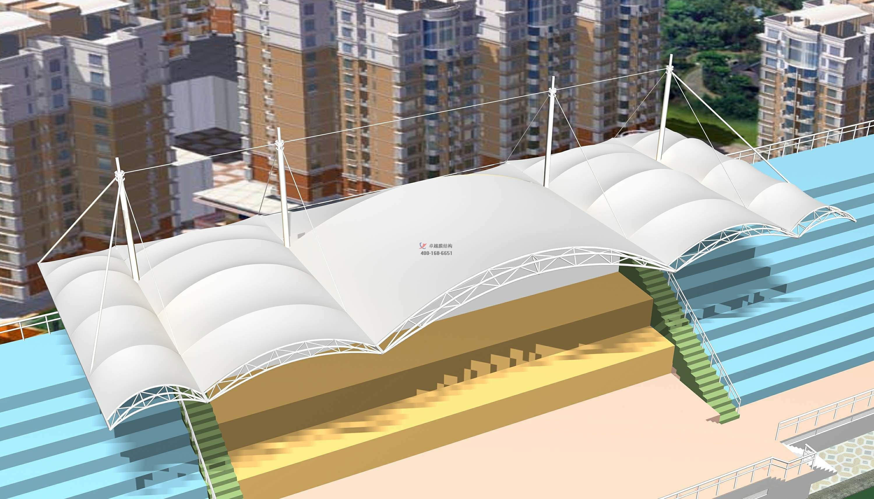膜結構看臺是膜結構材料近年來(lái)應用的一個(gè)新領(lǐng)域,膜結構建筑能很好的籠罩全部的看臺,是有: